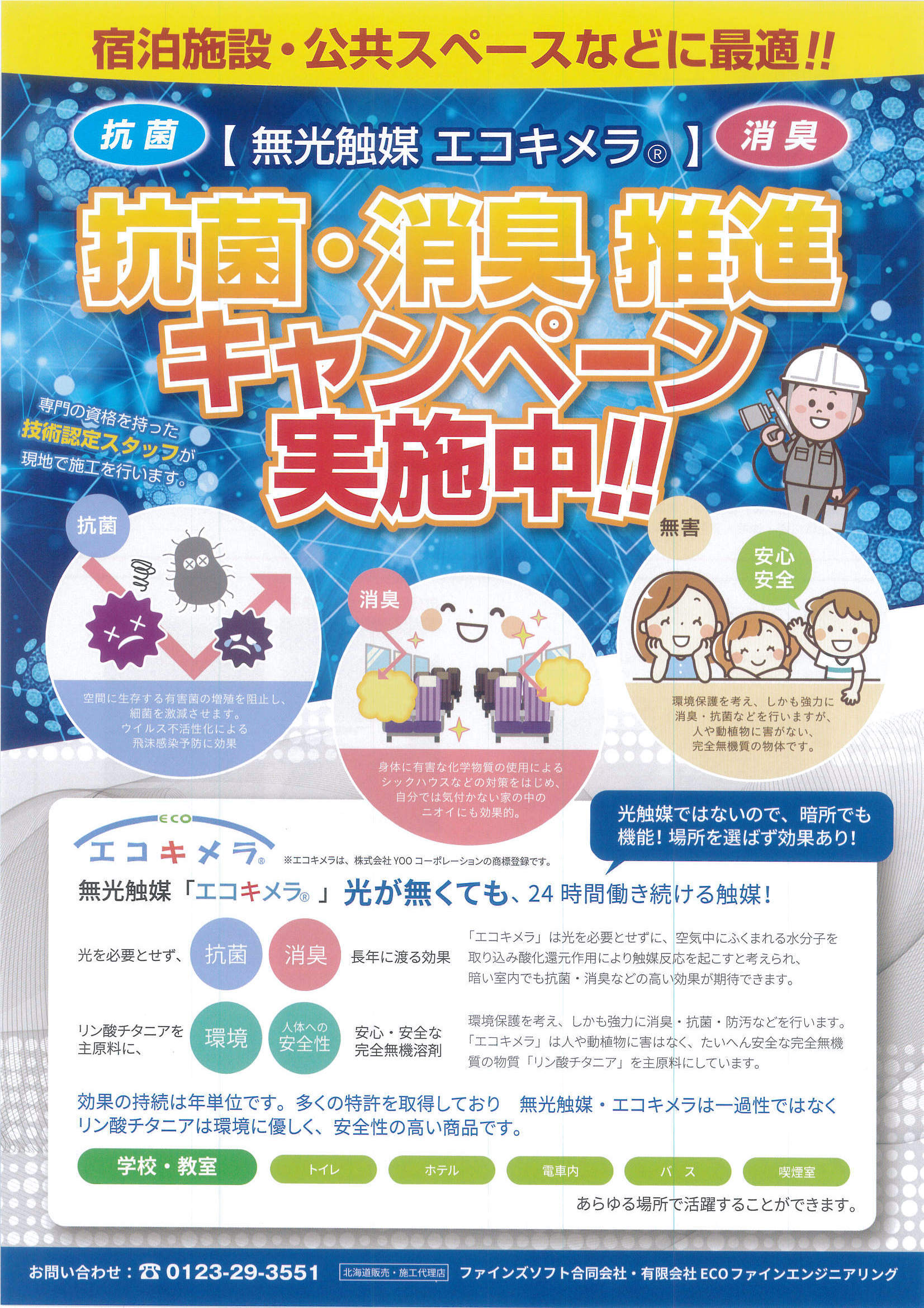 ※ 施工例では、北海道千歳市児童館での模様がこちらです。エコキメラで館内消毒しました。