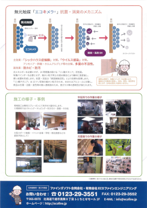 - A:年単位で、多くの特許を取得しており、無効触媒のエコキメラは一過性でなく、リン酸チタニアは環境に優しく、安全性の高い商品です。
